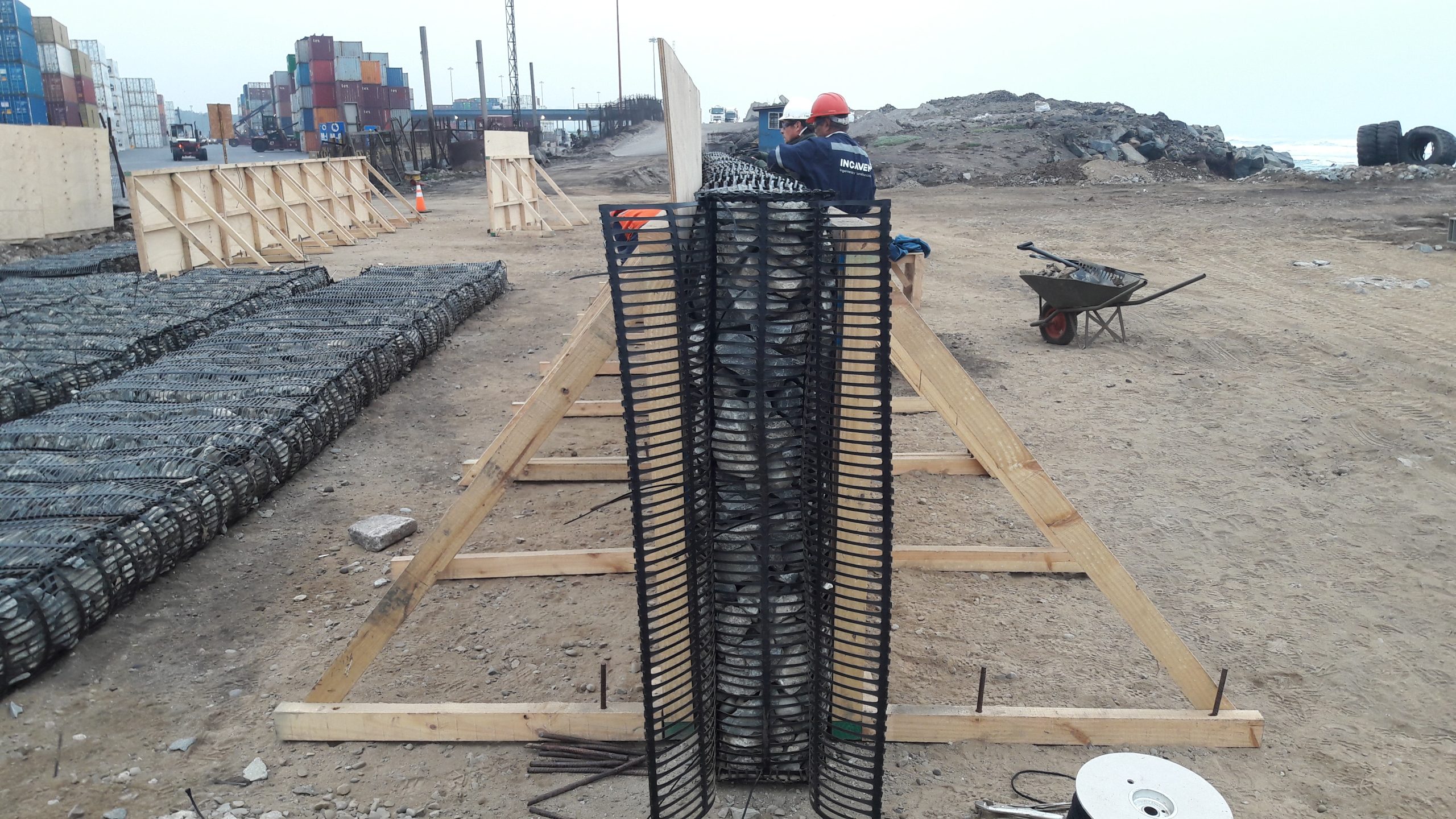 El proyecto considera el suministro, fabricación e instalación en el fondo marino de geocolchones del tipo Triton Marine Mattress de 12” de espesor, rellenos con material granular tipo enrocados, sobre dos fajas de fondo marino en los sitios 1, 2 y 3 del Puerto de San Antonio.